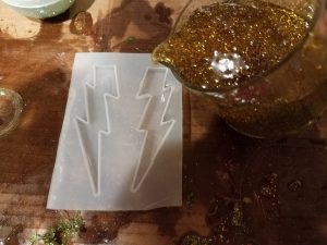 You have to measure equal amounts of resin and hardener for the resin to set. Mix for 2 minutes and then mix in the glitter and pour into a mold.